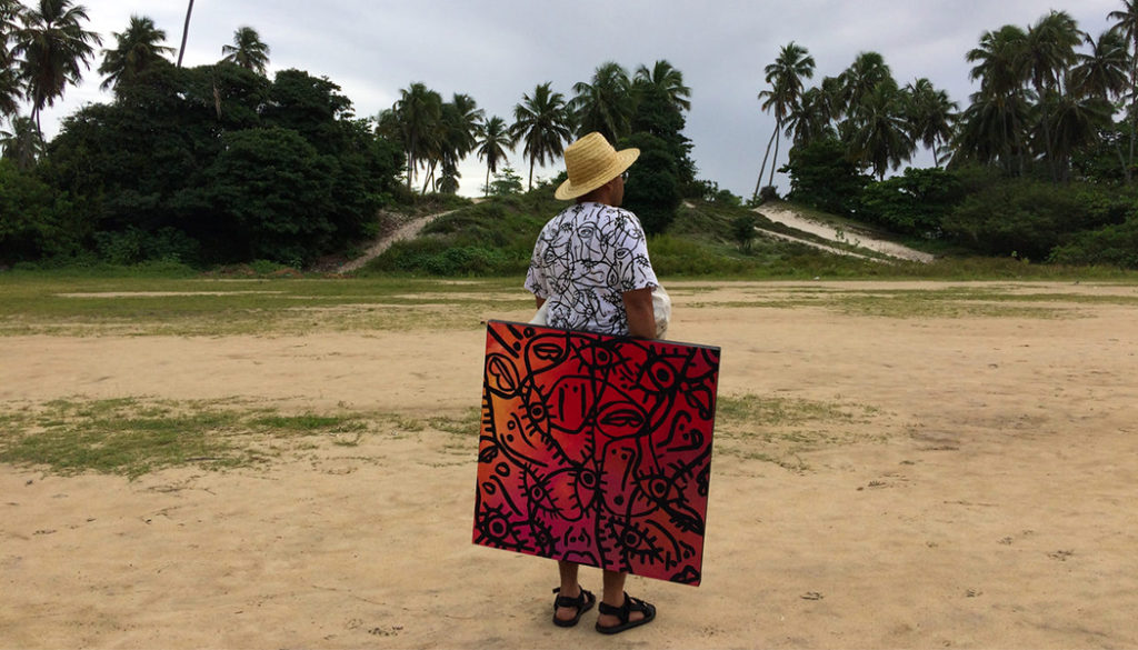 Com uma prática artística diretamente ligada ao seu cotidiano, às relações interpessoais e ao trabalho que desenvolve como terapeuta ocupacional, o artista alagoano Rodrigo Gonçalves, o Gilbef, acredita nos poderes naturais dos seres humanos como fontes inesgotáveis de subsistência. Gilbef interessa-se pela troca, pelo afeto e pelo respeito, o que considera essencial para a vida. Formado em Terapia Ocupacional (UNCISAL) com especialização em Arte-educação, vem atuando com crianças e adolescentes em situação de vulnerabilidade no Centro Especializado em Reabilitação (CERII) Apae – Maceió e com jovens no Laboratório Metuia Núcleo Universidade Federal da Paraíba – UFPB/Universidade Estadual de Ciências da Saúde de Alagoas – UNCISAL. Suas obras são concebidas em diferentes linguagens, com intervenções estético-políticas compostas por atos apresentados em exposições nos últimos 10 anos. Nesta conversa com o Projeto Afro, o artista fala dos manifestos propostos por sua obra e do elo intrínseco com sua formação profissional.