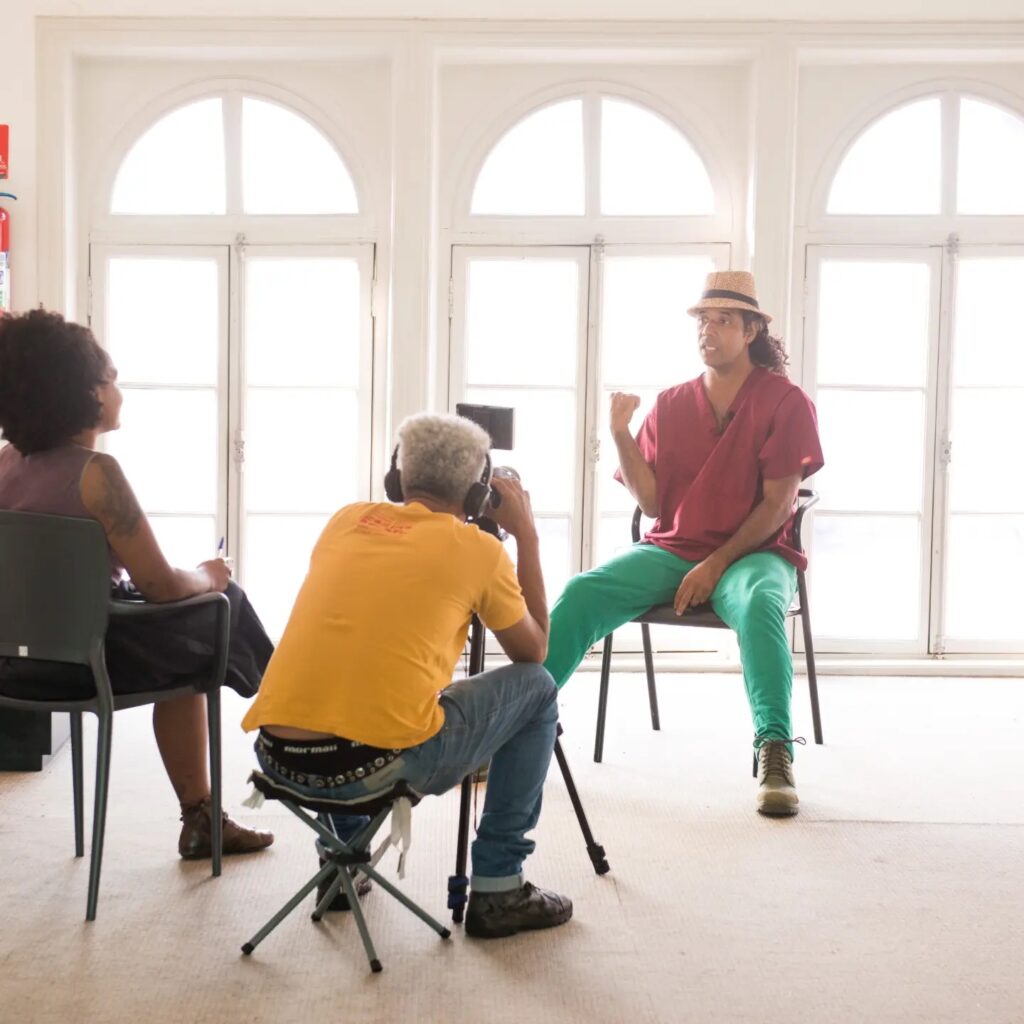 Luciara Ribeiro em gravação do video-documentário “Narrativas e Territórios em disputa: Investigações sobre os sistemas das artes” (2022), que fez parte da exposição “Atos Modernos”. Foto: Divulgação