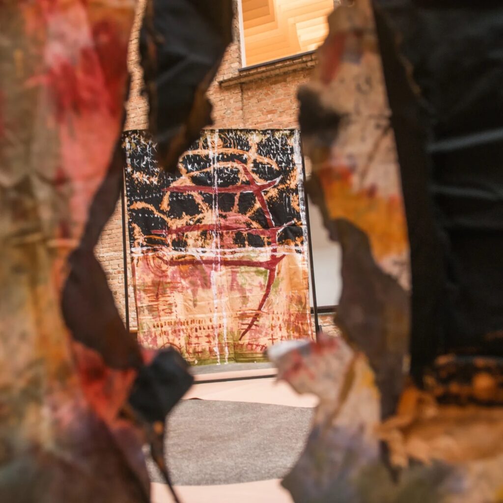 Detalhe da obra de Castiel Vitorino Brasileiro, Prosperidade são lembranças e escolhas (2022), apresentada em “Atos Modernos”. Foto: Divulgação